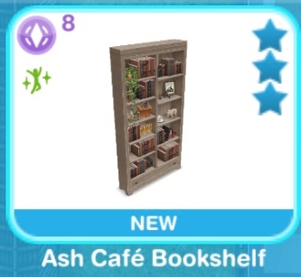| Ash Cafe Bookshelf |  | 8SP | Cafe Grande | S400 | -Bookcases & Shelving -Socialpoints -3 Stars |