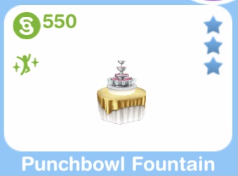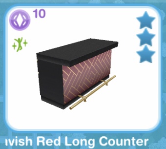 | Lavish Red Drinks Bar |  | 85SP | Sophisticated Socialite | S4,250 | -Miscellaneous -Socialpoints -No Stars |