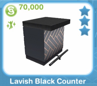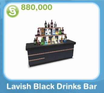 | Lavish Black Drinks Bar |  | S880,000 | Sophisticated Socialite | S88,000 | -Miscellaneous -Simoleons -No Stars |