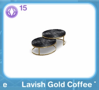 | Lavish Gold Coffee Table |  | 15SP | Sophisticated Socialite | S750 | -Coffee Tables & Desks -Socialpoints -No Stars |