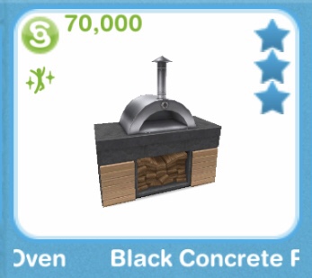| Lavish Black Circular Fireplace |  | S1,480,000 | Sophisticated Socialite | S148,000 | -Miscellaneous -Simoleons -1 Star |