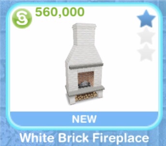| White Brick Fireplace |  | S560,000 | Romantic Garden | S56,000 | -Miscellaneous -Simoleons -1 Star |