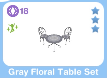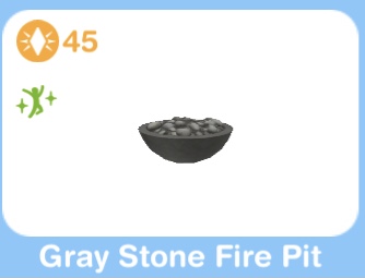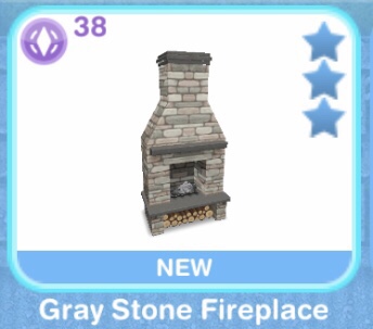 | Gray Stone Fireplace |  | 38SP | Romantic Garden | S1,900 | -Miscellaneous -Socialpoints -3 Stars |