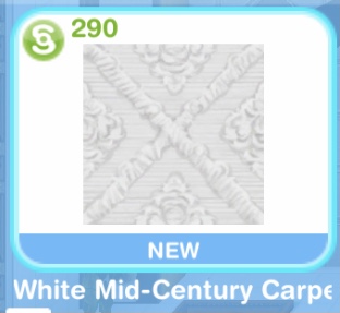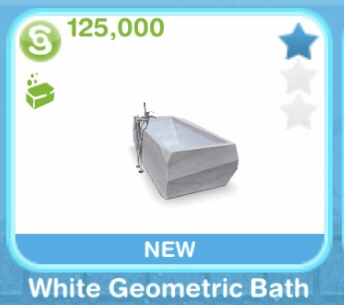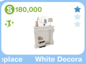 | White Geo Fireplace |  | S625,000 | Glam Mansion | S62,500 | -Miscellaneous -Simoleons -1 Star |