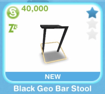| Black Geo Bar Stool |  | S40,000 | Glam Mansion | S4,000 | -Chairs & Stools -Simoleons -1 Star |