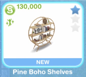 | Pine Boho Shelves |  | S130,000 | Desert Oasis | S13,000 | -Bookcases & Shelving -Simoleons -1 Star |