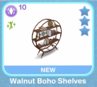 | Walnut Boho Shelves |  | 10SP | Desert Oasis | S500 | -Bookcases & Shelving -Socialpoints -3 Stars |
