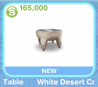 | White Desert Coffee Table |  | S165,000 | Desert Oasis | S16,500 | -Coffee Tables & Desks -Simoleons -No Stars |