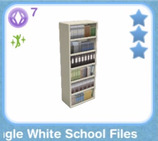 | Single Black School Files |  | S75,000 | School’s Out | S7,500 | -Bookcases & Shelving -Simoleons -1 Star |