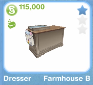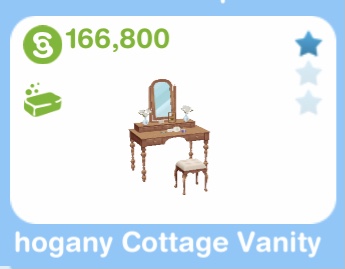 | Mahogany Cottage Fireplace |  | S150,700 | Charming Cottage | S15,070 | -Miscellaneous -Simoleons -1 Star |