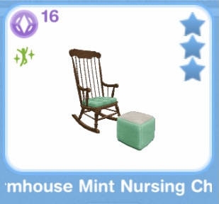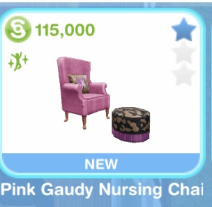 | Green Shag Nursing Chair |  | S100,500 | Palm Perfection | S10,050 | -Chairs & Stools -Simoleons -1 Star |