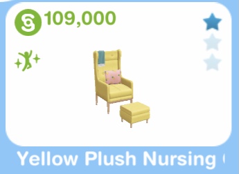| Yellow Plush Nursing Chair |  | S109,000 | Fresh Fruiternity | S10,900 | -Chairs & Stools -Simoleons -1 Star |