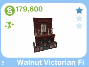 | Walnut Victorian Fireplace |  | S179,600 | Scholarly Chateau | S17,960 | -Miscellaneous -Simoleons -1 Star |