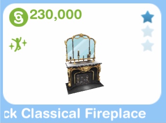 | Black Classical Fireplace |  | S230,000 | Mysterious Masquerade | S23,000 | -Miscellaneous -Simoleons -1 Star |