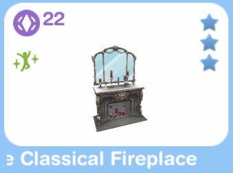 | Bronze Classical Fireplace |  | 22SP | Mysterious Masquerade | S1,100 | -Miscellaneous -Socialpoints -3 Stars |