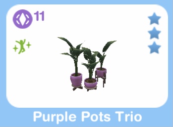 | Purple 1×1 Ottoman |  | S5,000 | Custom Closets | S500 | -Chairs & Stools -Simoleons -3 Stars |