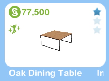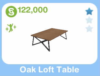 | Oak Loft Coffee Table |  | S113,000 | Lofty Lifestyle | S11,300 | -Coffee Tables & Desks -Simoleons -No Stars |
