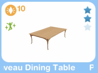 | Blanc Cafe Table |  | S2,500 | French Romance | S250 | -Coffee Tables & Desks -Simoleons -No Stars |