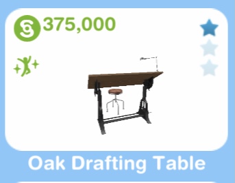 | Oak Drafting Table |  | S375,000 | Lofty Lifestyle | S37,500 | -Coffee Tables & Desks -Simoleons -1 Star |