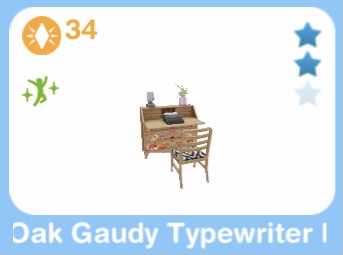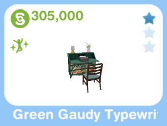 | Green Gaudy Typewriter Desk |  | S305,000 | Marvellously Maximalist | S30,500 | -Recreation -Simoleons -1 Star |