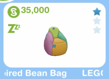 | LEGO® DOTS Inspired Bean Bag |  | S35,000 | LEGO® DOTS x The Sims | S3,500 | -Chairs & Stools -Simoleons -1 Star |