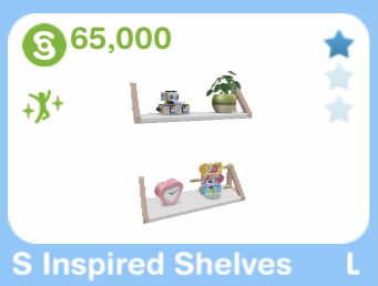 | LEGO® DOTS Inspired Shelves |  | S65,000 | LEGO® DOTS x The Sims | S6,500 | -Bookcases & Shelving -Simoleons -1 Star |