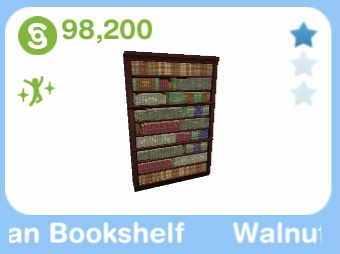 | Walnut Victorian Bookshelf |  | S98,200 | Scholarly Chateau | S9,820 | -Bookcases & Shelving -Simoleons -1 Star |