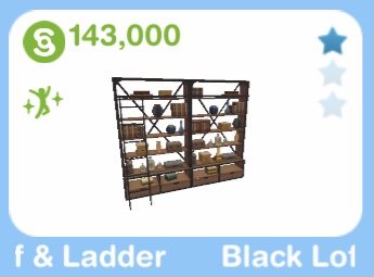 | Black Loft Bookshelf and Ladder |  | S143,000 | Lofty Lifestyle | S14,300 | -Bookcases & Shelving -Simoleons -1 Star |