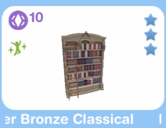 | Black Classical |  | S90,000 | Mysterious Masquerade | S9,000 | -Bookcases & Shelving -Simoleons -1 Star |