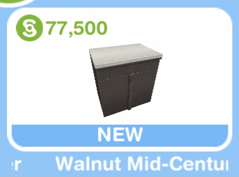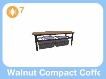 | Walnut Crate Table |  | S90,000 | Cafe Grande | S9,000 | -Side Tables -Simoleons -No Stars |