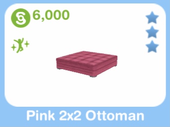 | Pink 2×2 Ottoman |  | S6,000 | Custom Closets | S600 | -Chairs & Stools -Simoleons -3 Stars |