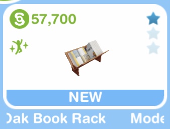 | Modest Oak Book Rack |  | S57,700 | Serene Suburban | S5,770 | -Bookcases & Shelving -Simoleons -1 Star |