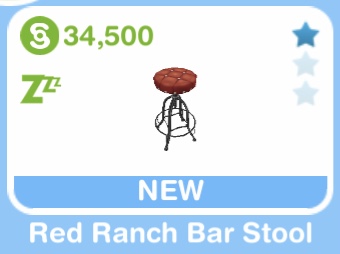 | Red Ranch Bar Stool |  | S34,500 | Stately Saloon | S3,450 | -Chairs & Stools -Simoleons -1 Star |