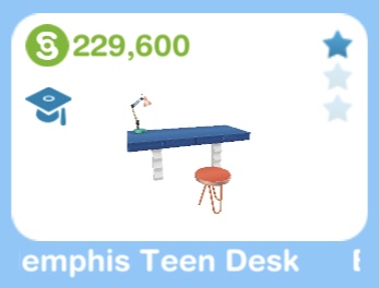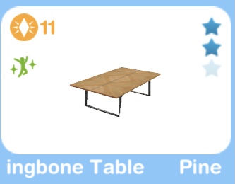 | Pine School Table |  | S145,000 | School’s Out | S14,500 | -Coffee Tables & Desks -Simoleons -1 Star |