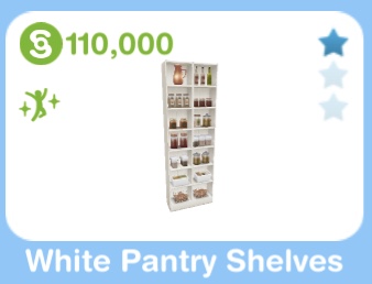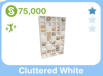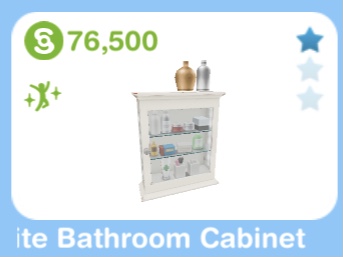| Round White |  | S98,000 | Family Furnishings | S9,800 | -Bookcases & Shelving -Simoleons -1 Star |
