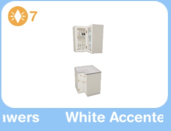| White Elegant Side Table |  | S60,500 | Lovely Lattices | S6,050 | -Side Tables -Simoleons -No Stars |