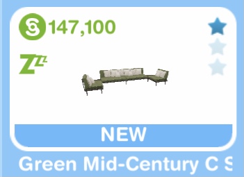 | Green Mid-Century C Sofa |  | S147,100 | Mid-Century Mansion | S14,710 | -Sofa Sets -Simoleons -1 Star |