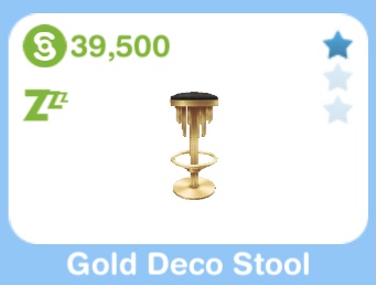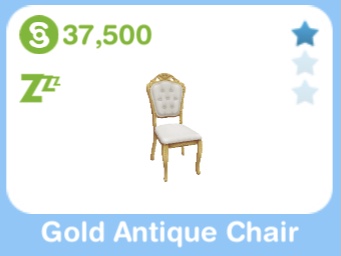 | Gold Glamour Stool |  | S34,800 | Glamorous Getaway | S3,480 | -Chairs & Stools -Simoleons -1 Star |