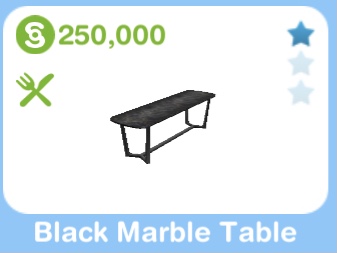 | Lavish Black Coffee Table |  | S150,000 | Sophisticated Socialite | S15,000 | -Coffee Tables & Desks -Simoleons -No Stars |