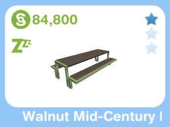 | Walnut Mid-Century Coffee Table |  | S90,500 | Mid-Century Mansion | S9,050 | -Coffee Tables & Desks -Simoleons -No Stars |