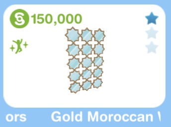 | Blue Gaudy Fireplace |  | S215,000 | Marvellously Maximalist | S21,500 | -Miscellaneous -Simoleons -1 Star |