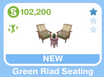 | Green Riad Seating |  | S102,200 | Opulent Oasis | S10,20 | -Chairs & Stools -Simoleons -1 Star |
