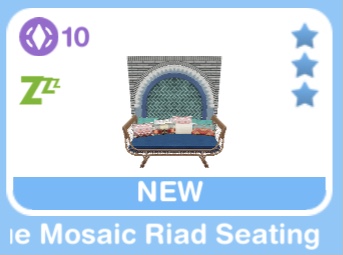 | Blue Riad Seating |  | 9SP | Opulent Oasis | S550 | -Chairs & Stools -Socialpoints -3 Stars |