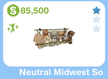 | Clay Fireplace |  | S585,000 | Desert Oasis | S58,500 | -Miscellaneous -Simoleons -1 Star |