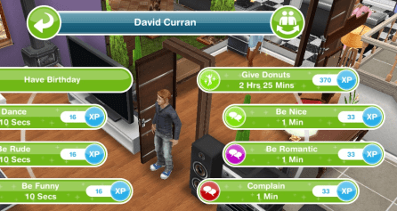 - Give donuts to a stranger- sim needs to NOT be a friend or romance with that sim- 2 hours 25 minutes