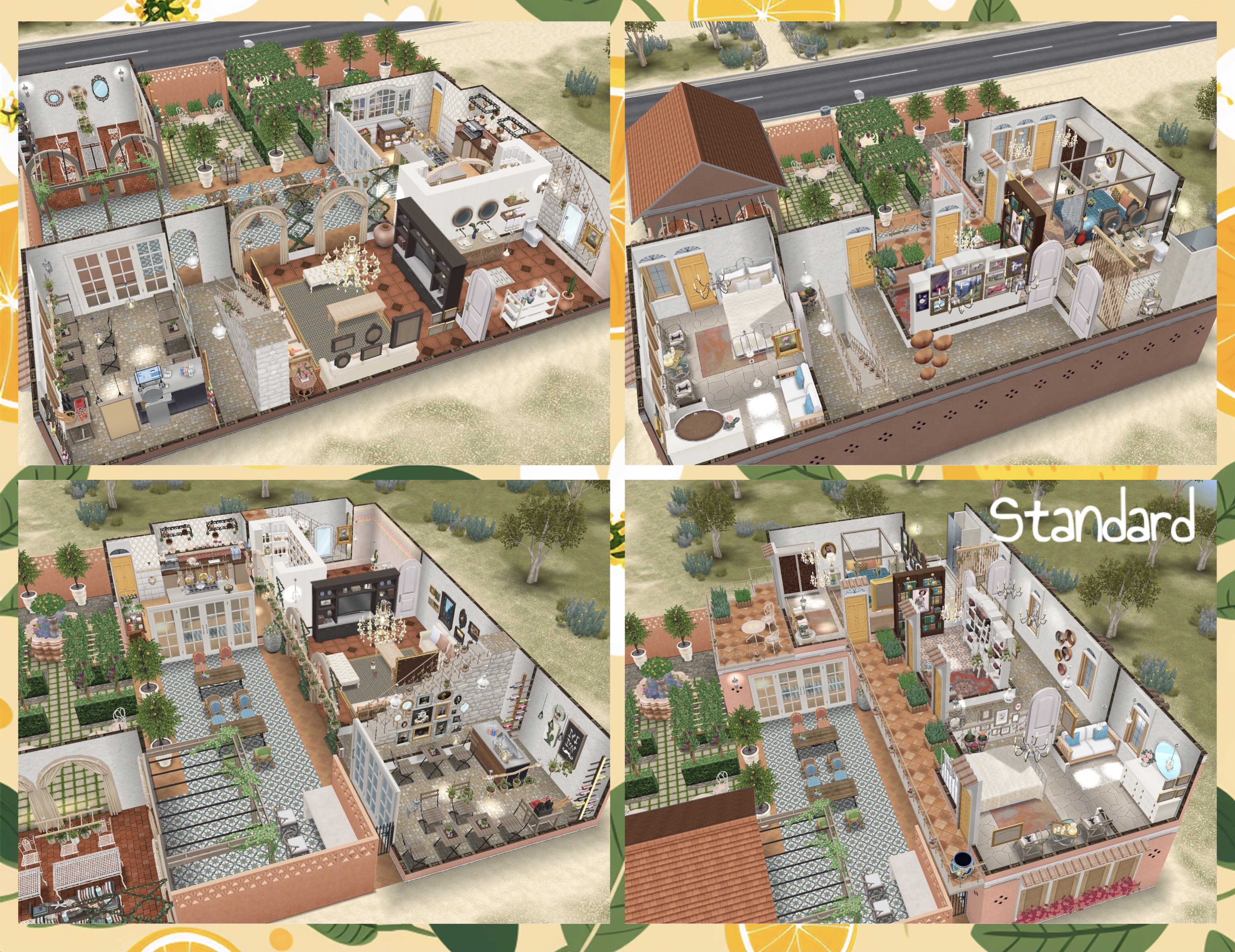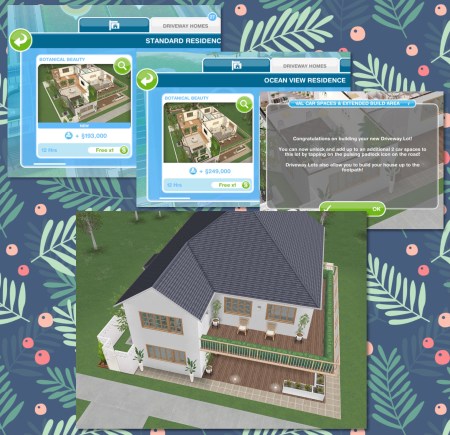 This template can be found under the driveway homes tab and built on a standard or premium residence, the first one is free then they cost simoleons depending on how many houses you have already built. You can add up to 4 cars to this house lot!