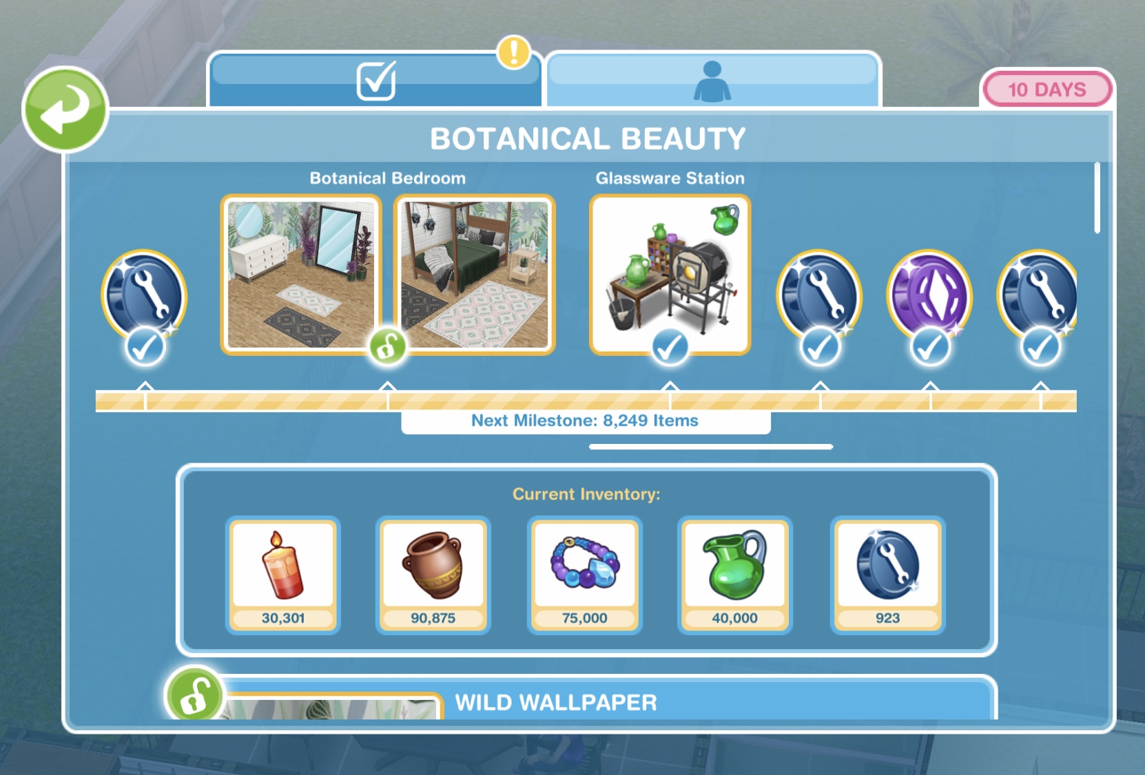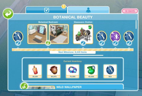 Here you will see you have collected enough items to unlock the Wild Wallpaper pack. When you unlock each pack, before the items are available in your home store you need to purchase them with the arts and crafts items you make- this goal is coming up!