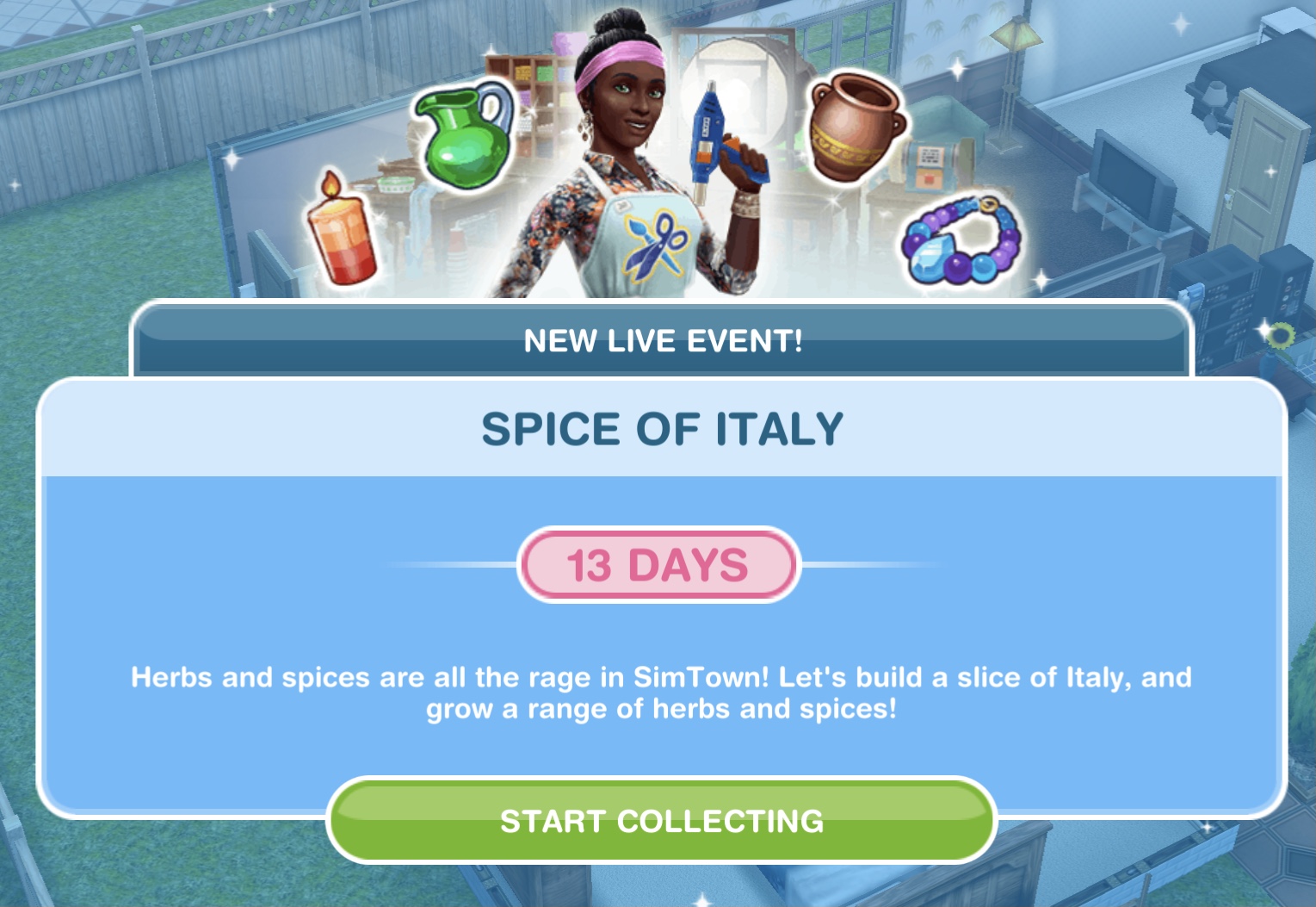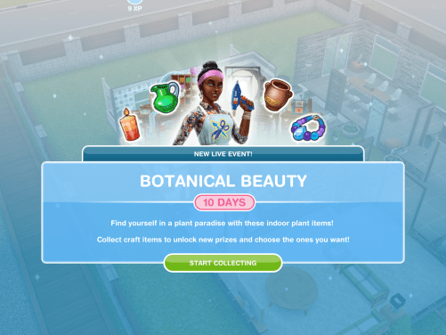 The botanical beauty live event is back from the 30th September to unlock plant themed items and if you complete the whole event in the time limit you unlock the Botanical Beauty house template. This event is only here for 10 days and the aim of it is to collect enough arts and crafts items from the arts and crafts stations (found in the event tab of buy mode) to unlock all the items in this event.