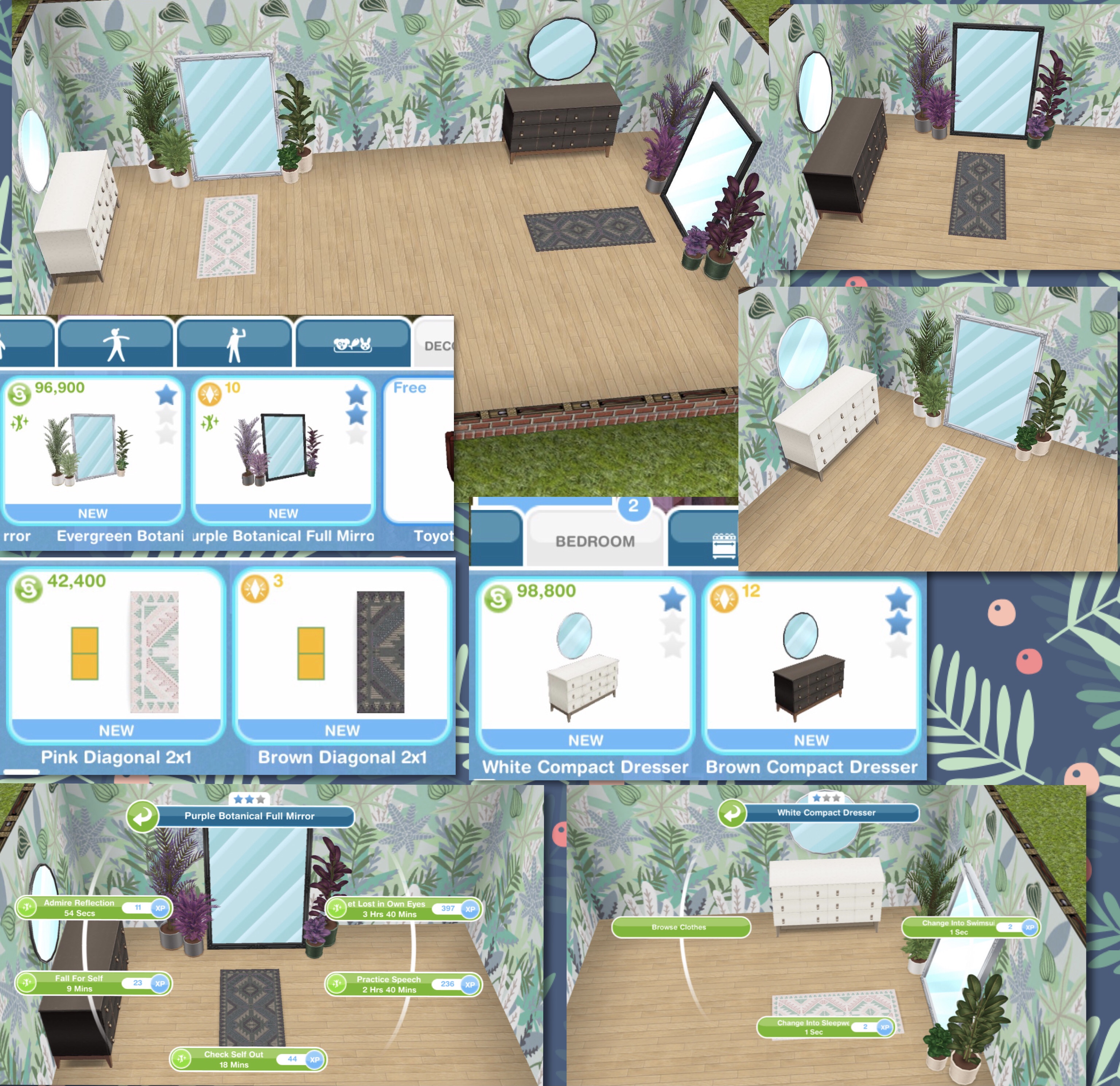Decorations Section: Evergreen (S96,900) and Purple (10LP) Botanical Full Mirrors