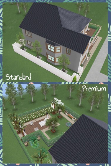 The house on the standard and premium residence is the same, the only difference is the premium has a garden